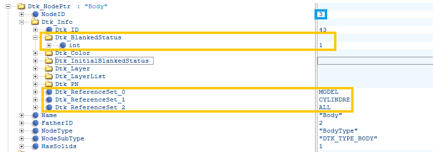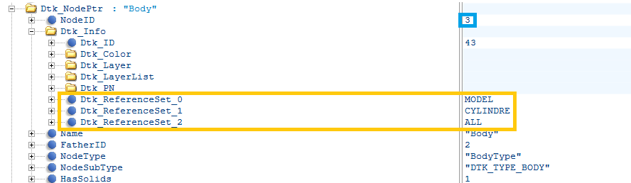 The Dtk_Node type Body with ID 3 belongs to references set : MODEL, CYLINDRE, ALL