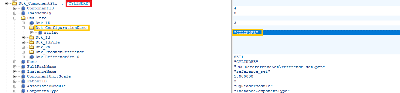 - Dtk_Component with type InstanceComponentType CYLINDRE that instance reference_set.prt using reference set CYLINDRE