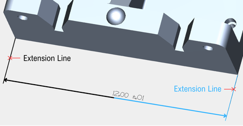 In Datakit representation, a leader can also have an extension line, that usually points from the annotation to the model geometry.